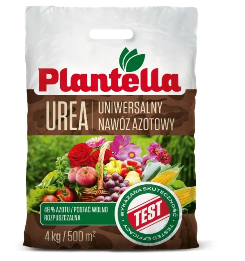 Plantella UREA to wysokoskoncentrowany, uniwersalny nawóz azotowy w postaci mocznika, przeznaczony do szerokiego zastosowania w ogrodnictwie, sadownictwie i rolnictwie. Azot jest jednym z kluczowych makroelementów niezbędnych do prawidłowego rozwoju roślin - stymuluje intensywny wzrost, rozwój części zielonych, poprawia fotosyntezę oraz ogólną witalność roślin. Nawóz działa skutecznie dzięki 46% zawartości azotu w postaci wolno rozpuszczalnej, co zapewnia dłuższe działanie i zmniejsza straty składników odżywczych. Zalety produktu: - uniwersalne zastosowanie: idealny do warzyw, owoców, kwiatów, zbóż i trawników - wysoka zawartość azotu, aż 46%: zapewnia bujny wzrost i intensywne zazielenienie - forma wolno rozpuszczalna: stopniowo uwalnia składniki odżywcze - efektywność na dużej powierzchni: 4 kg nawozu wystarcza na aż 500 m²