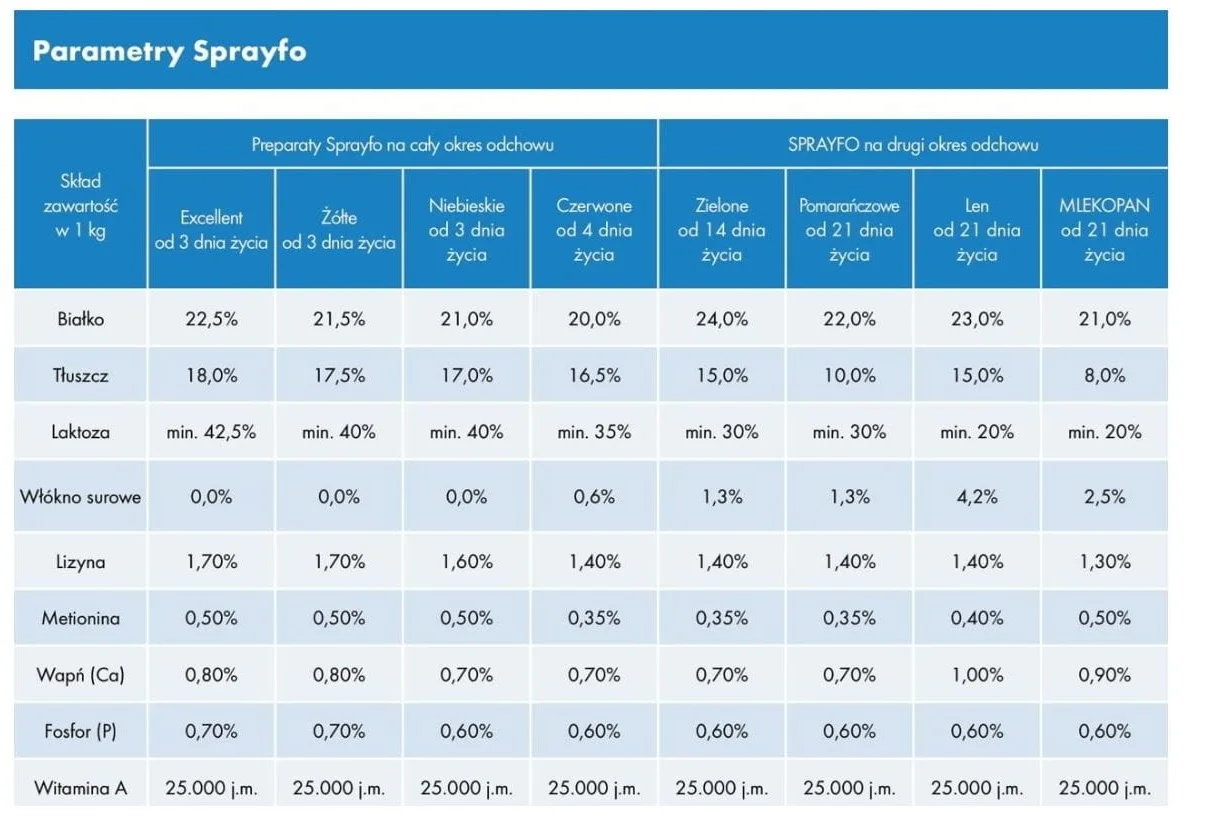 Najlepiej sprzedający się preparat posiarowy w ofercie SPRAYFO. Preparat łączy w sobie cechy dobrego jakościowo i ekonomicznego odchowu cieląt. Stosowany w całym okresie odchowu jest fundamentem odchowu o średniej intensywności.