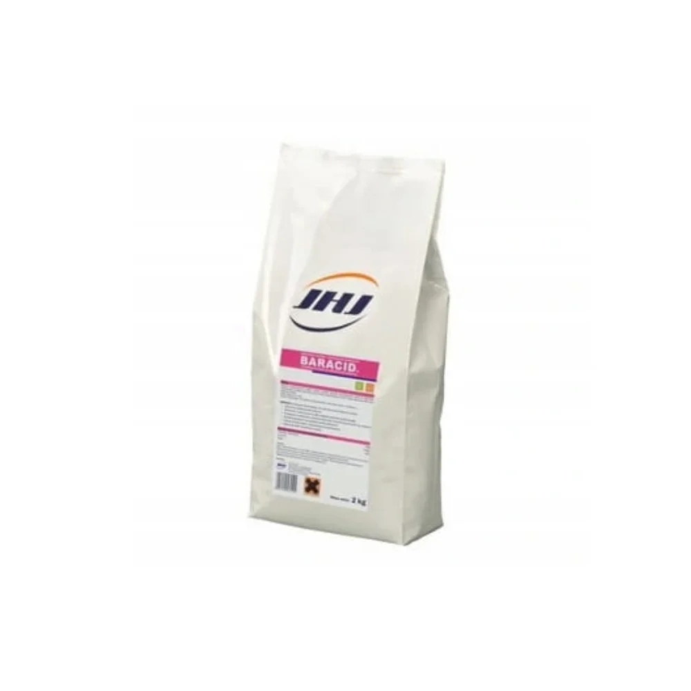 Baracid 2 kg – zakwaszacz do paszy dla trzody chlewnej, wspomagający prawidłowe trawienie i mikroflorę jelitową. Poprawia strawność paszy, stabilizuje pH przewodu pokarmowego i wspiera zdrowie świń w każdym okresie hodowli.