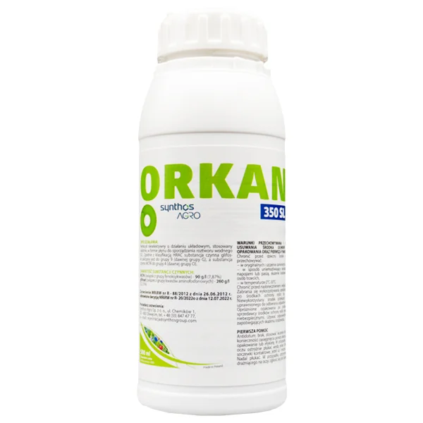 Orkan 350 SL jest środkiem chwastobójczym, w formie płynu do sporządzania roztworu wodnego, stosowanym nalistnie, przeznaczonym do zwalczania rocznych i wieloletnich chwastów jednoliściennych i dwuliściennych w sadach drzew ziarnkowych i pestkowych.